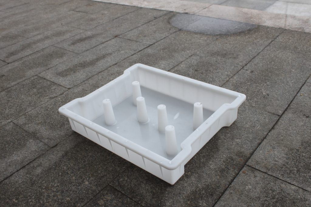 此款邊溝蓋板塑料模具采用塑料聚丙烯注塑加工而成,二端以缺口設(shè)計(jì),方便后期對于邊溝部分區(qū)域是否堵塞情況。而在蓋板塑料模具的內(nèi)部共設(shè)置了六個(gè)塑料堵頭,實(shí)際上就是水泥蓋板成品上的六個(gè)下水孔。