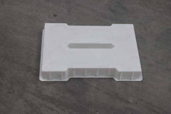 此款為塑料材質(zhì)的路基缺口預制溝蓋板模具,主要以雙邊缺口及中孔下水橫條設(shè)計,主要用于安紫高速公路路基邊溝建設(shè)。其中所制水泥缺口蓋板厚度高達10CM,對于公路邊溝的安全穩(wěn)定意義重大。