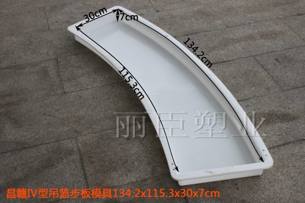 水泥吊籃步板塑料模具主要用于預(yù)制高鐵橋墩吊籃上的檢查步板,此款模具系列為昌贛高鐵線路專用,共分為I、II、III、IV四個(gè)型號(hào),由直行吊籃步板塑料模具及彎道圓弧吊籃步板塑料模具組成,其中I型為直行樣式,II、III、IV為圓弧樣式。
