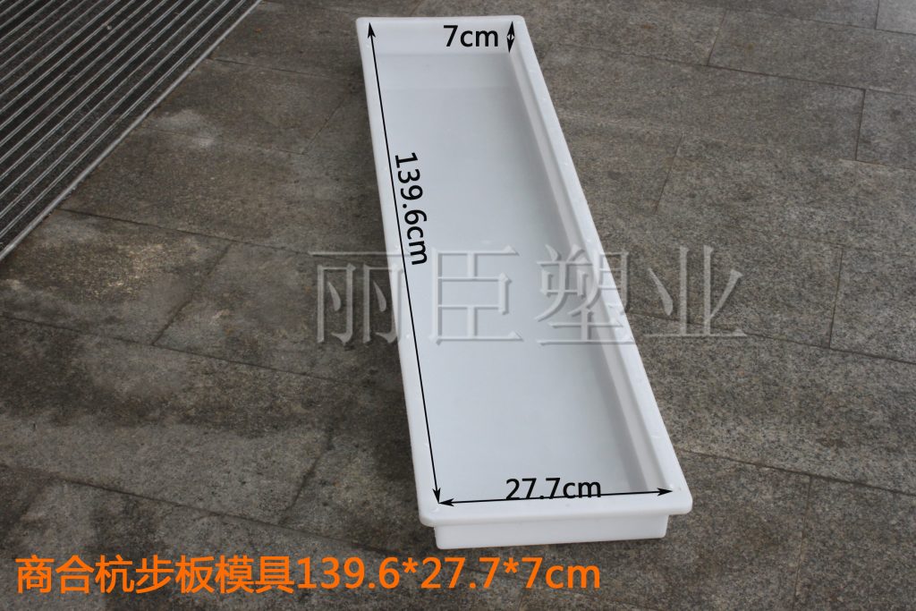 這2個尺寸的高鐵水泥步板塑料模具均采用中石化所產(chǎn)聚丙烯塑料加工而來,長度長達將近1.4米,主要用于鋪設(shè)吊籃的水泥步板預(yù)制,主要項目則用于商合杭高鐵建設(shè)。