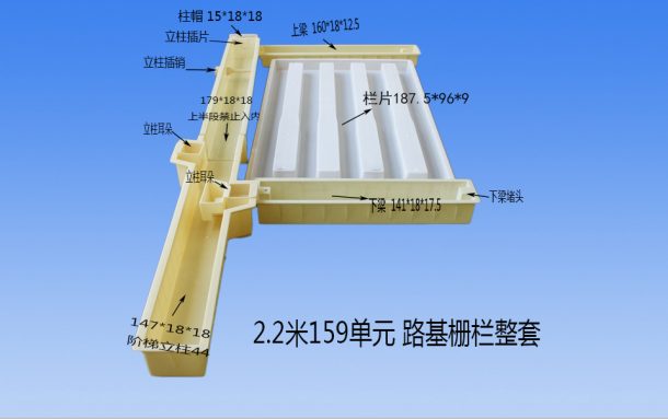 路基護(hù)欄塑料模具各組件尺寸: