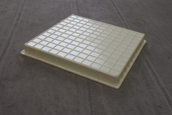 ABS材質(zhì)的平面路沿石塑料模具,尺寸為較為常用60*60*6厘米,在塑料模具的底部以11*11小方格加強筋設(shè)計,側(cè)面四周為9*4跟加強筋設(shè)計,極大的緩解了水泥制品塑料模具易變形問題。