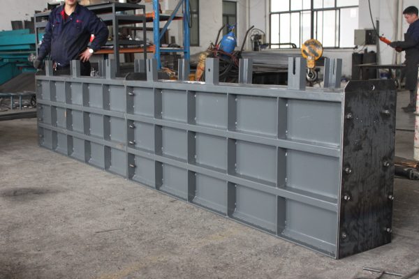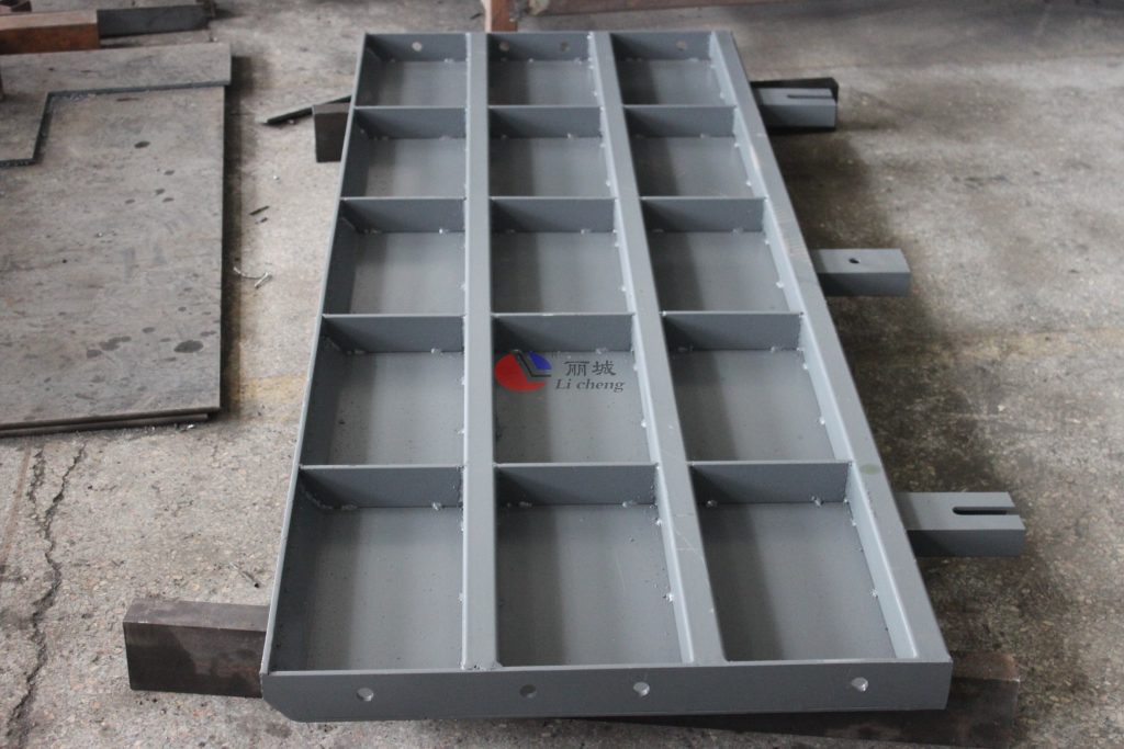 1.擋土墻鋼模具欄片部分,經(jīng)裁剪焊接完成,是各部分中最為關鍵的組成部件。