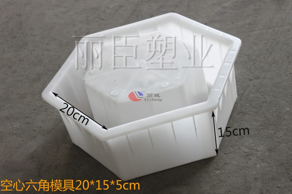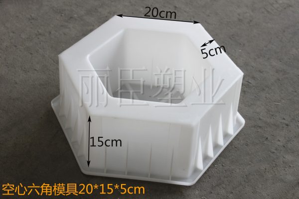 空心六角塑料模具在設(shè)計上采用PP聚丙烯塑料注塑而成,這款六角護坡模具的尺寸為20x15x5cm,5cm的壁厚對于后期澆筑成型水泥制品,在安裝使用上能更為簡便。