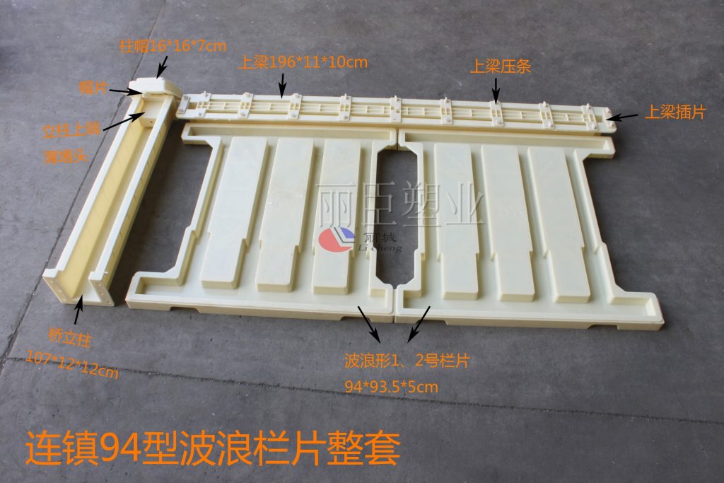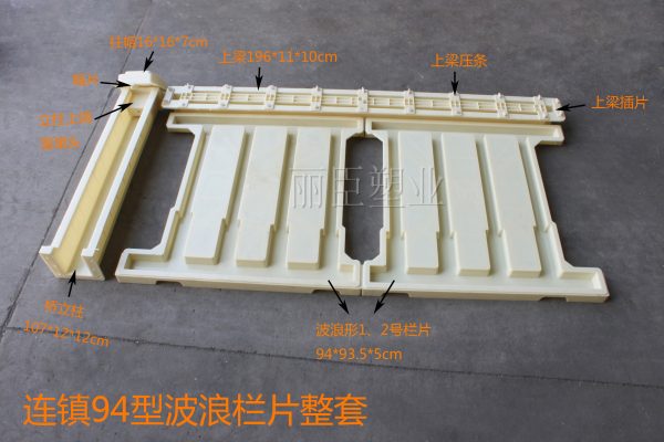 連鎮(zhèn)鐵路柵欄模具欄片在澆筑過程中采用ABS塑料為主要注塑原料,ABS塑料原料質(zhì)地較硬,在對(duì)水泥制品模具澆筑時(shí)不易發(fā)生變形等情況,也能減少因運(yùn)輸問題而照成的模具破順變形等情況,澆筑成型后的水泥制品柵欄在外觀上呈現(xiàn)波浪形,更能符合符合江南水鄉(xiāng)風(fēng)格。