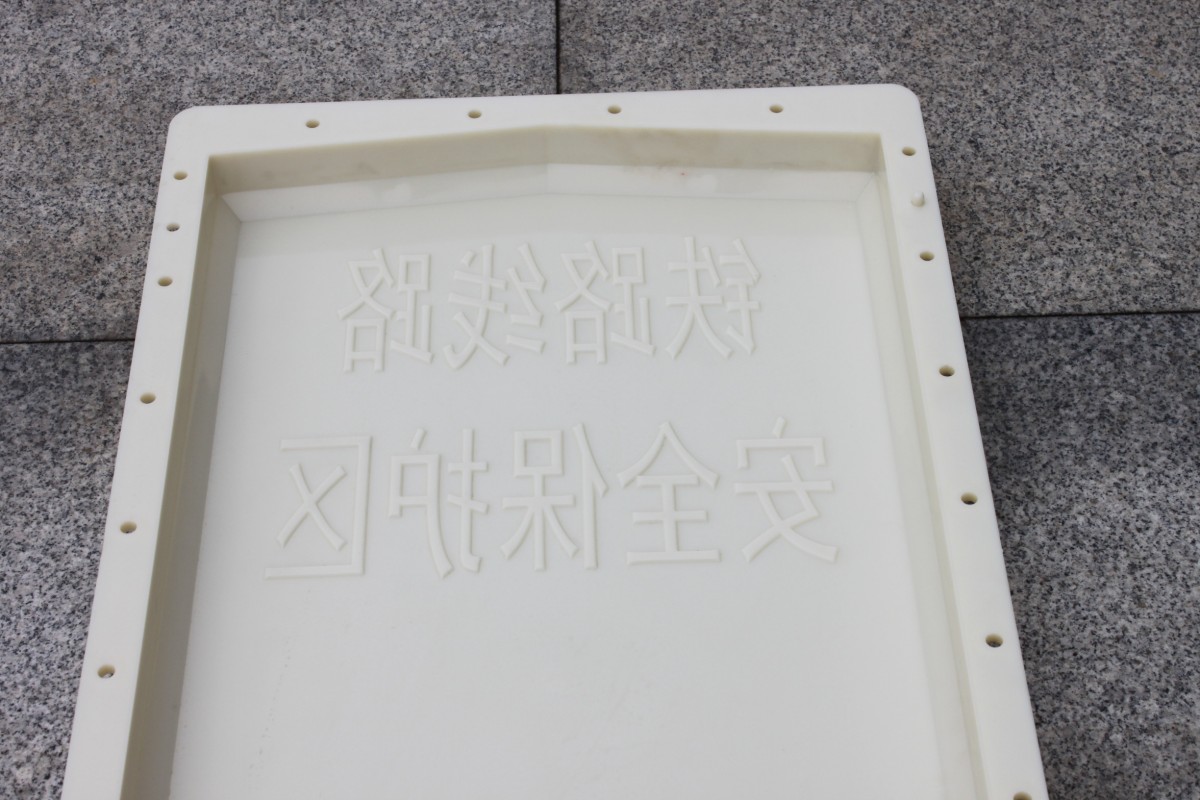 水泥警示牌模具使用ABS材質(zhì)注塑工藝制造,主要分為2個(gè)部分。正面為標(biāo)有“鐵路線路安全保護(hù)區(qū)”字樣,反面為一個(gè)中國(guó)鐵路圖案,配件方面主要為2個(gè)主體部分組裝時(shí)所需要的螺絲螺帽。主要應(yīng)用為水泥混凝土警示牌預(yù)制,主要功能是在中國(guó)鐵路建設(shè)中,提醒人們?yōu)榇颂帪殍F路線路安全保護(hù)區(qū),在施工等一系列活動(dòng)中需注意國(guó)家鐵路的安全。