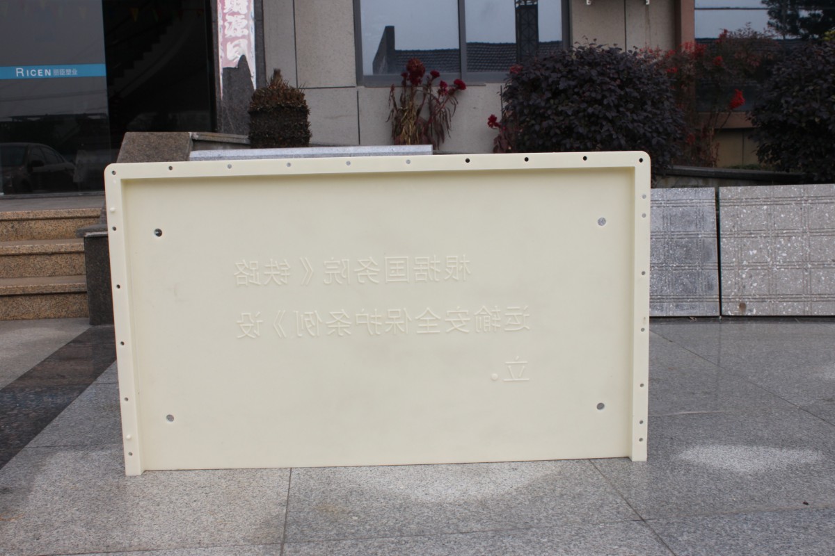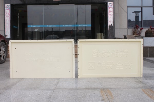 標識牌塑料模具主要的結(jié)構(gòu)為2快拼合而成。標識牌總共分為2個部分:一面印有“國家鐵路安全線路保護區(qū)”字樣,另一面為“根據(jù)國務(wù)院《鐵路安全運輸保護條例》設(shè)立”字樣。此水泥警示牌模具為國家中鐵局定制,任何企業(yè)及個人制造都需國家鐵路局授權(quán)許可才可制造生產(chǎn)。