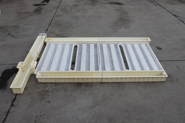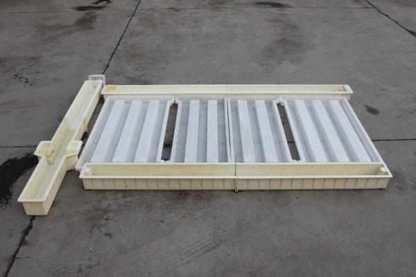 護(hù)欄欄片模具在高速路基護(hù)欄模具里面設(shè)置了4片式設(shè)計,水泥欄片成型為4+3+3+4的組合模具,尺寸分別為149.5*81*9cm2片,149.5*59*9cm2片。在使用整個路基護(hù)欄模具澆筑水泥制品過程中,水泥欄片模具為使用率相對較高的模具,采用PP聚丙烯原料更好的韌性可以更好的提高模具的使用次數(shù)。